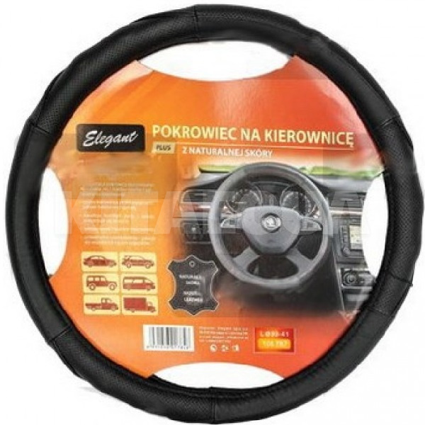 Чехол на руль L (39-40 см) черный натуральная кожа с перфорацией ELEGANT (105092)