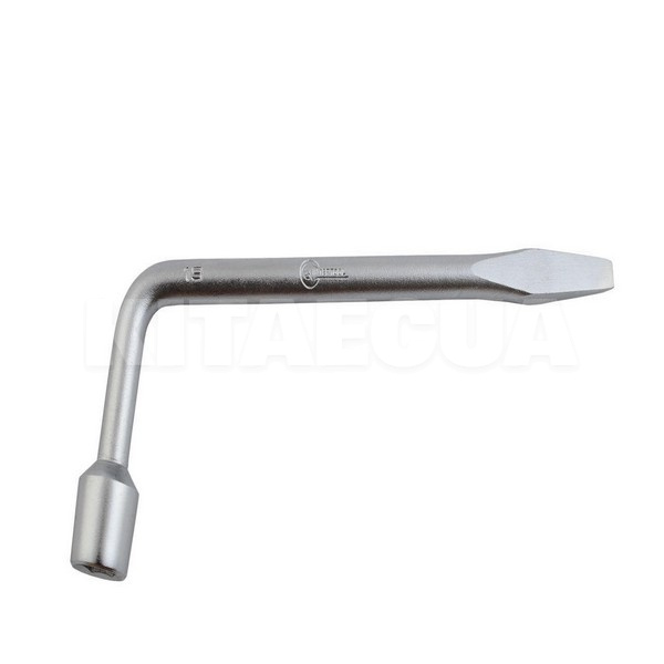 Ключ баллонный L-образный 19 мм 350 мм - изготовлен из высококачественной углеродистой стали с цинковым покрытием. Он используется для установки и снятия автомобильных колес. Данная модель выполнена в виде рукоятки и несъемной торцевой головки, расположенной под углом к рукоятке и имеющей 6-гранный рабочий профиль.