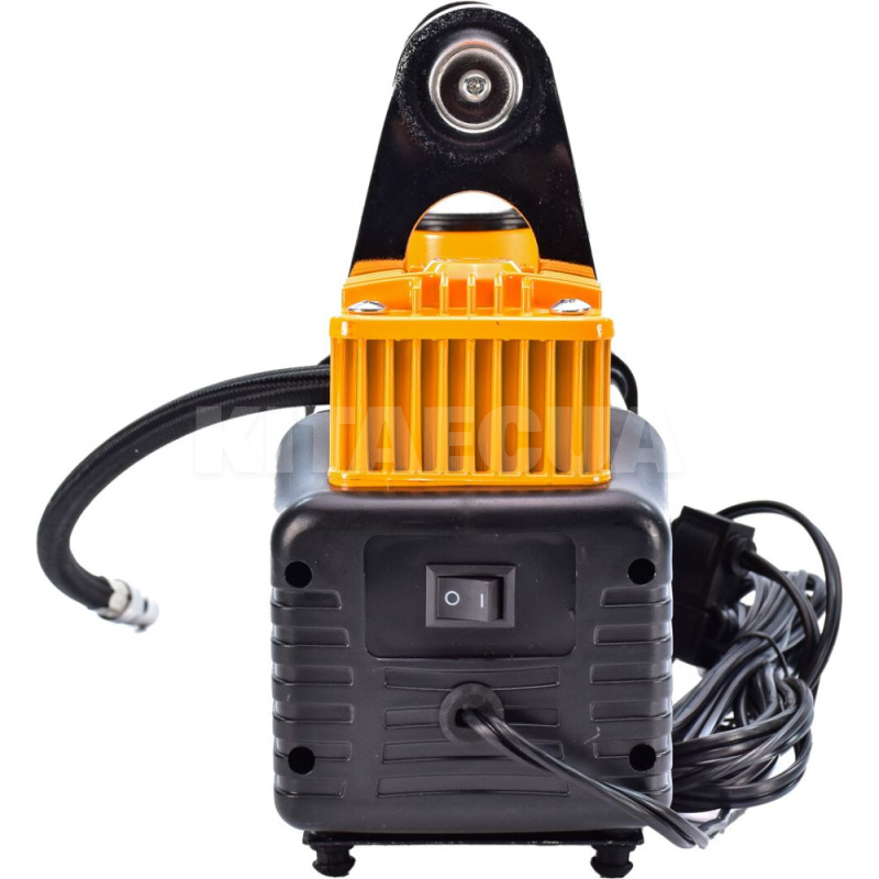За подачу воздуха в объеме 85 литров в минуту отвечает двухпоршневой двигатель, потребляющий 360 Вт при номинальном напряжении 12 В. Источником питания для данной модели компрессора выступает аккумулятор автомобиля, подключение к которому происходит посредством двух стандартных клемм.
