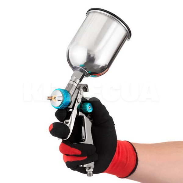 - Бачок, изготовленный из металла, позволяет работать даже с самыми агрессивными ЛКМ;